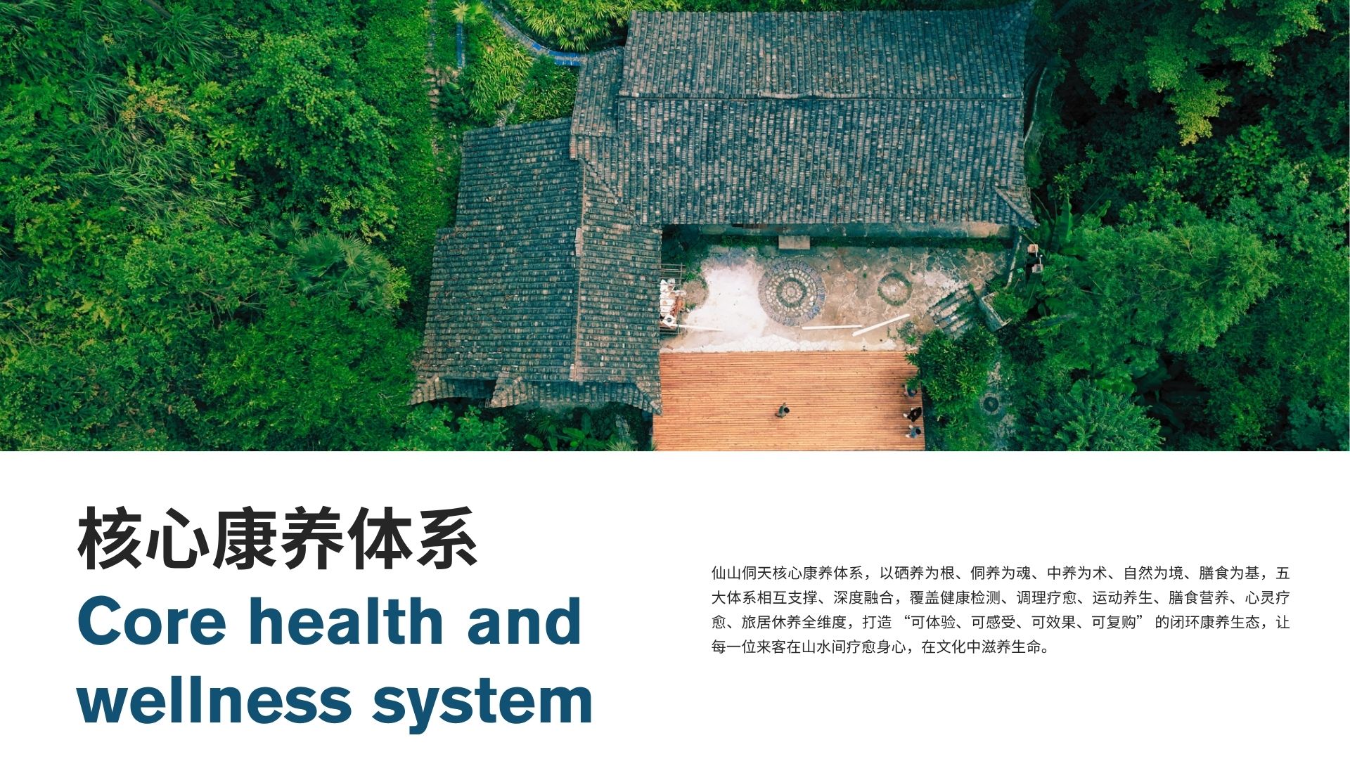 依托九姊妹山原生态森林、高负氧离子、云雾山水资源,打造自然疗愈康养体系。以森林氧吧、山林步道、观景冥想平台、星空庭院为载体,提供森林疗愈、山林徒步、太极瑜伽、晨练吐纳、星空冥想、颂钵疗愈、抄经静心等轻康养项目。让游客在自然环境中释放压力、平复情绪、净化身心,实现从身体放松到心灵宁静的深层疗愈。